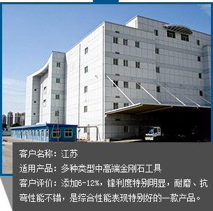 泰和汇金专业针对金刚石切割工具锋利度和耐磨度相互矛盾问题做了专项性研究,2008年,泰和汇金攻克技术难关专门和郑州大学、北京的教授一起研究出了具有划时代意义的金刚石工具胎体配方。实验证明,HJ加强合金粉Ⅰ号使用量只需为添加胎体配方的6-15%,锋利度就可以在原有性能的基础上提高16-30%,同时使用寿命也能延长10-28%。